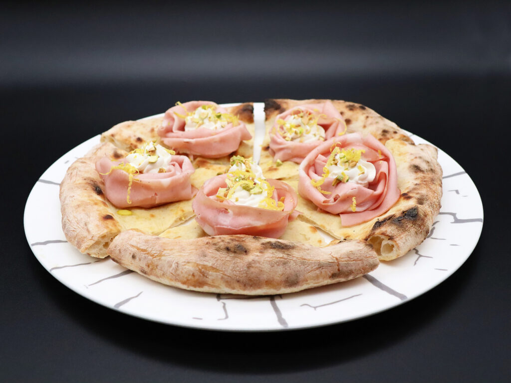 Mortadella IGP, ricotta campana di bufala campana DOP, pistacchi, zest di limone, olio evo