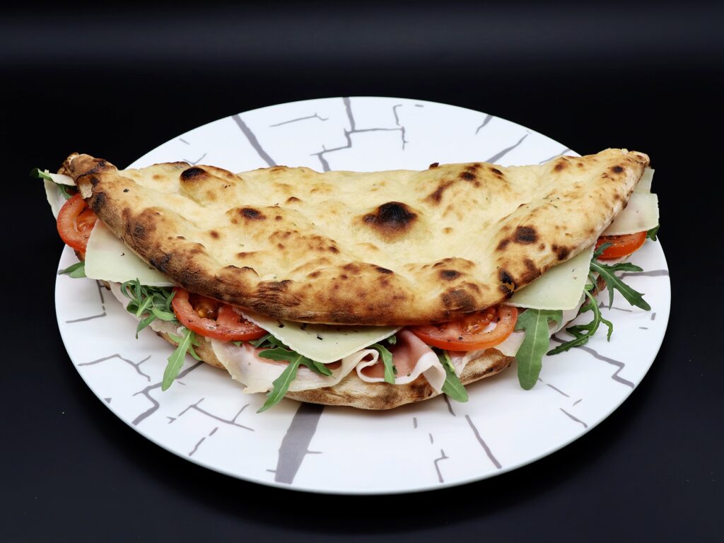 Pecorino dolce, prosciutto crudo, rucola, pomodori ramati, olio evo, origano